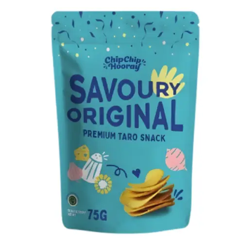 ChipChip Hooray Savoury Original adalah camilan premium berbahan dasar talas pilihan yang diiris tipis dan diproses hingga menghasilkan tekstur renyah sempurna. Varian ini menghadirkan rasa gurih original yang sederhana namun kaya rasa, cocok untuk semua kalangan dan segala suasana.
