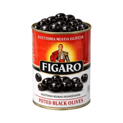 “Figaro Pitted Black Olives adalah buah zaitun hitam berkualitas yang telah dihilangkan bijinya (pitted) sehingga praktis digunakan untuk berbagai hidangan. Zaitun ini memiliki tekstur lembut dengan rasa gurih dan sedikit asin yang khas, cocok sebagai pelengkap salad, pasta, pizza, maupun berbagai masakan Mediterania. Diproses dengan standar kualitas tinggi untuk menjaga rasa alami dan kesegaran buah zaitun.